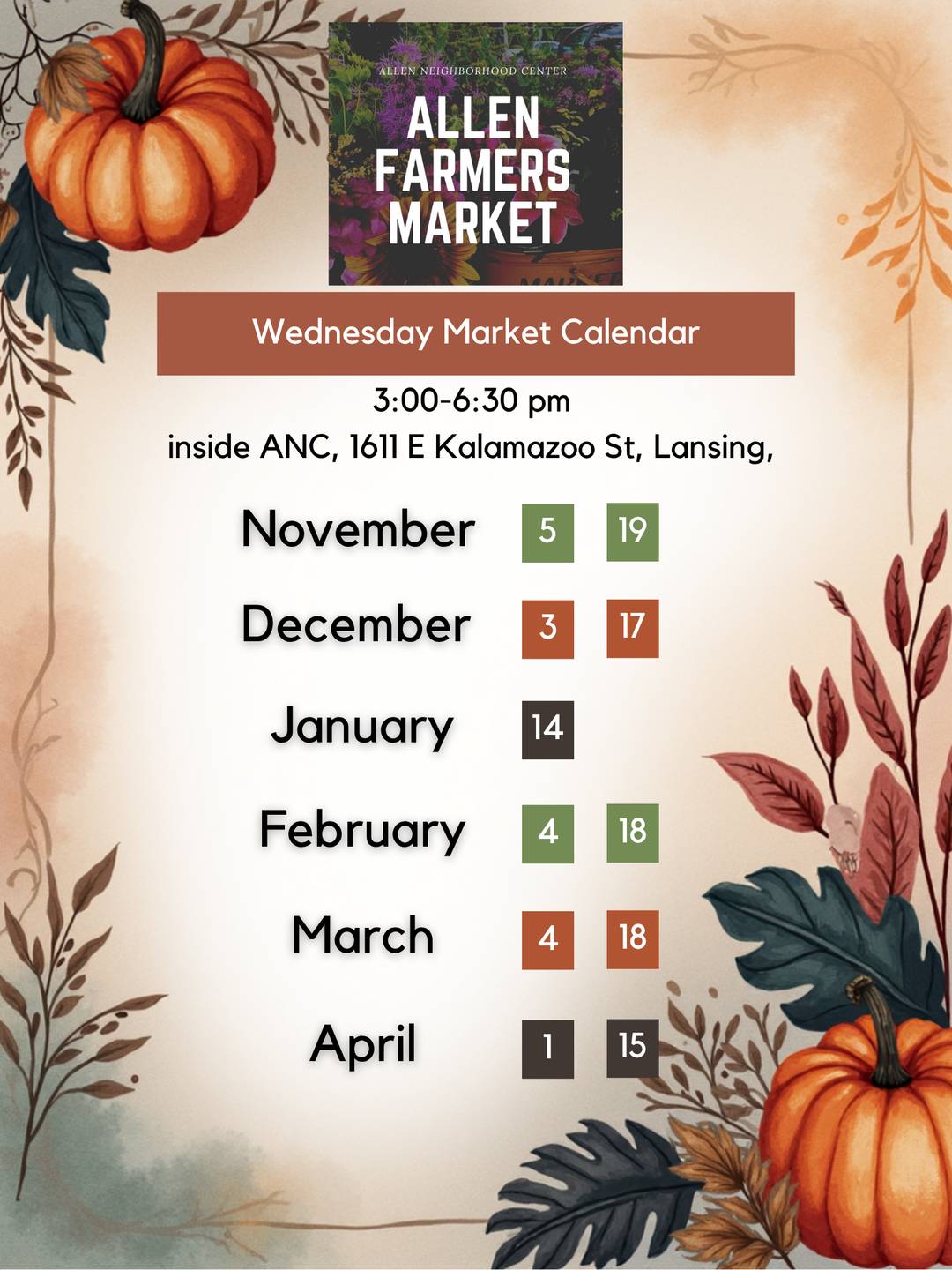 If you don't think Winter CSA is for you, no worries, you can still find us at the Meridian Township Farmers Market on Saturdays and at select Allen Farmers Markets, along with tons of other great local food vendors and artisans.