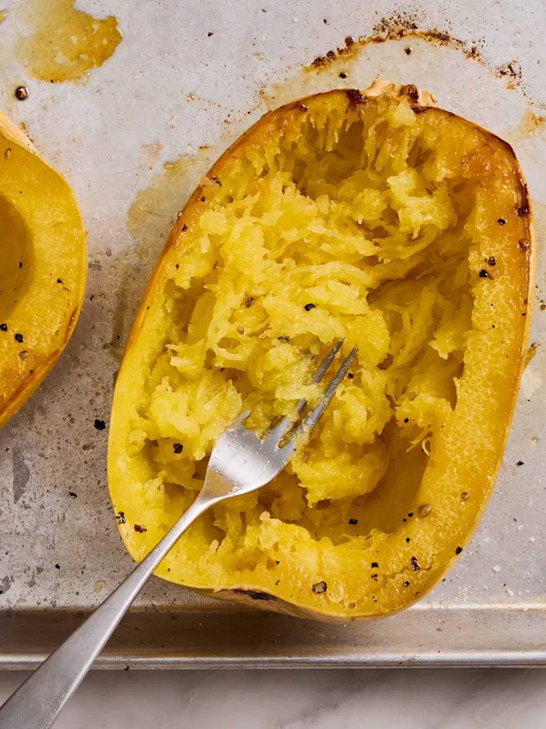 A lighter take on pasta night! Once roasted, spaghetti squash transforms into delicate strands that beautifully soak up butter, garlic, and Parmesan. Add sautéed greens, mushrooms, or a squeeze of lemon for brightness.