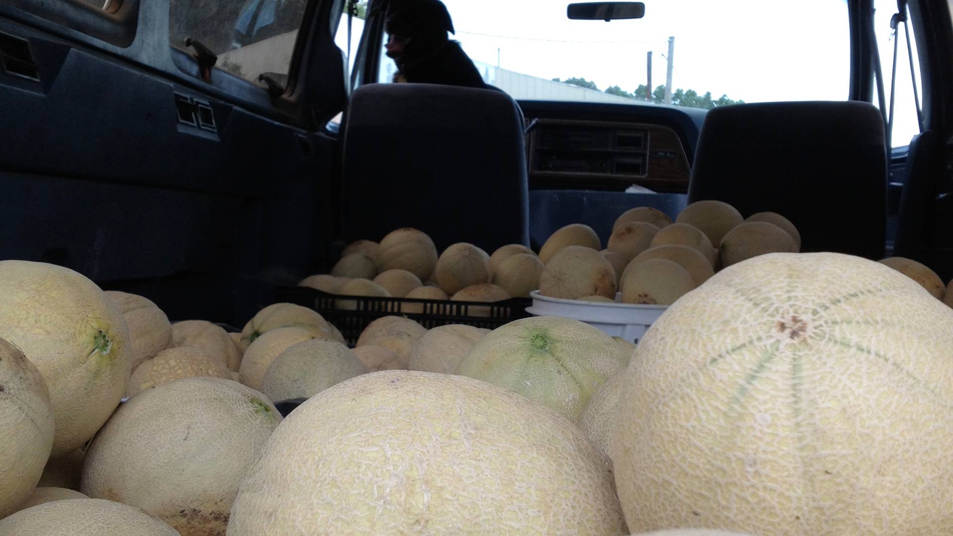 Muskmelons!*-they started coming in mid-last week, and by Friday, we discovered we were buried. There will be no shortage of these (we hope), for the next 2-3 weeks.