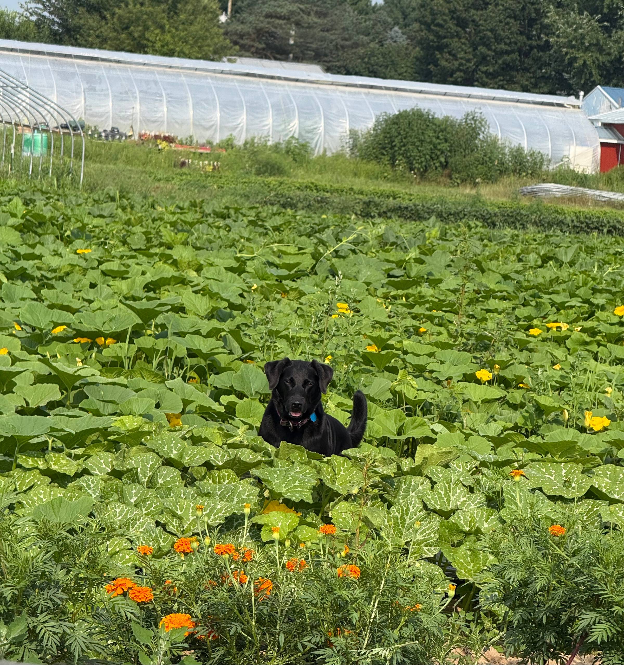 Our pup Bailey is inspecting the winter squash crop. (Or looking for mice? Or maybe both?)