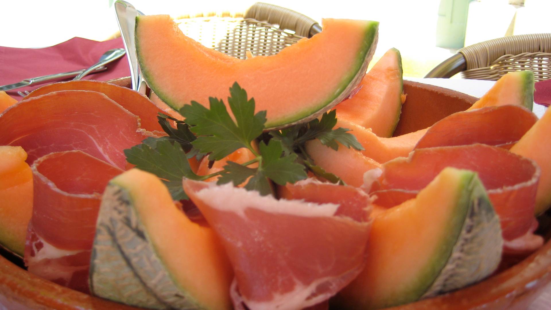 It has a rough, net-like rind and orange flesh. Americans call it “cantaloupe” out of tradition.