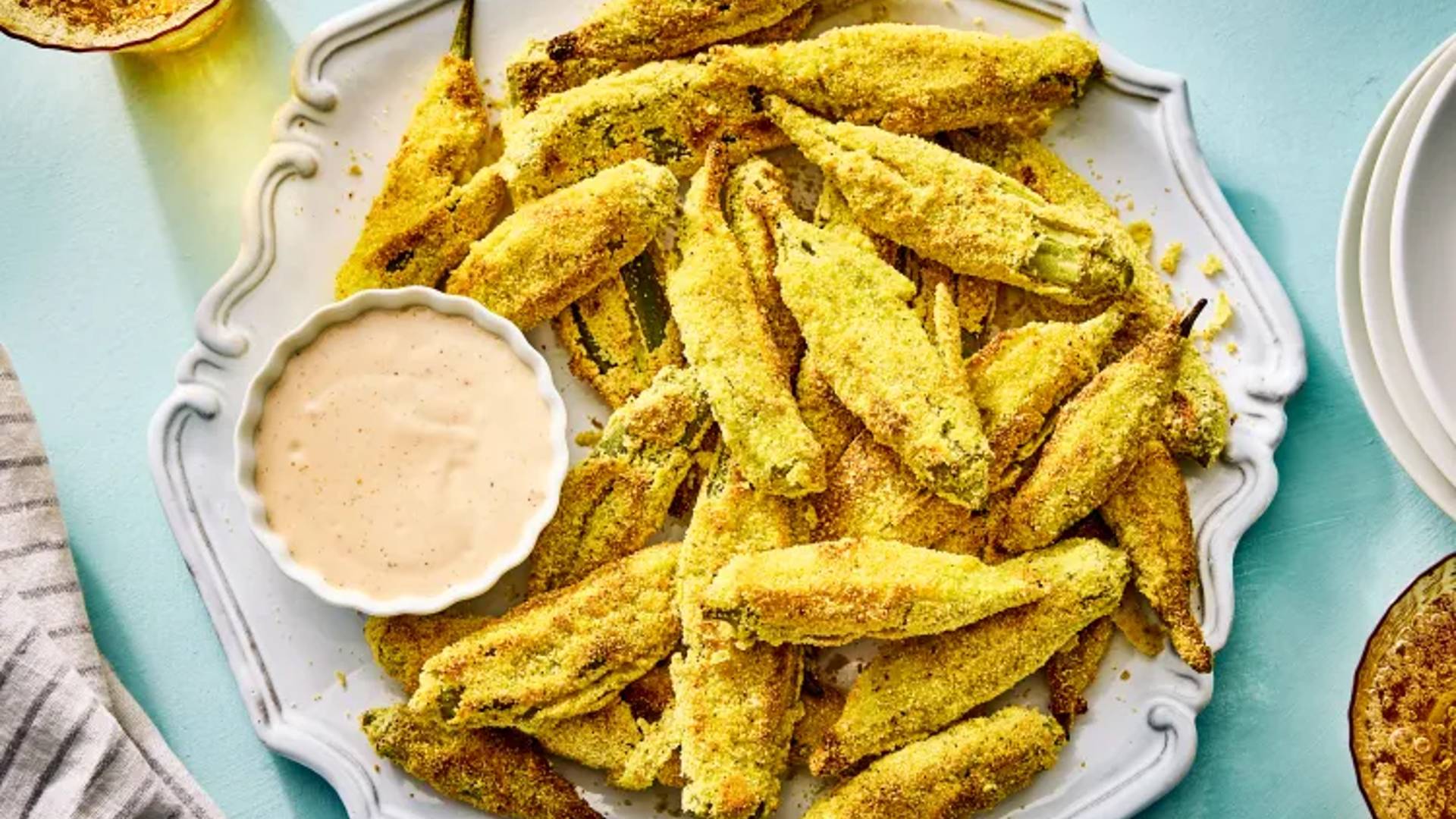 Smashed Oven-Fried Okra- Warm and crunchy—Southern-style comfort at its best. Try roasting or air-frying with a bit of olive oil for a lighter twist. Try this recipe from Southern Living.