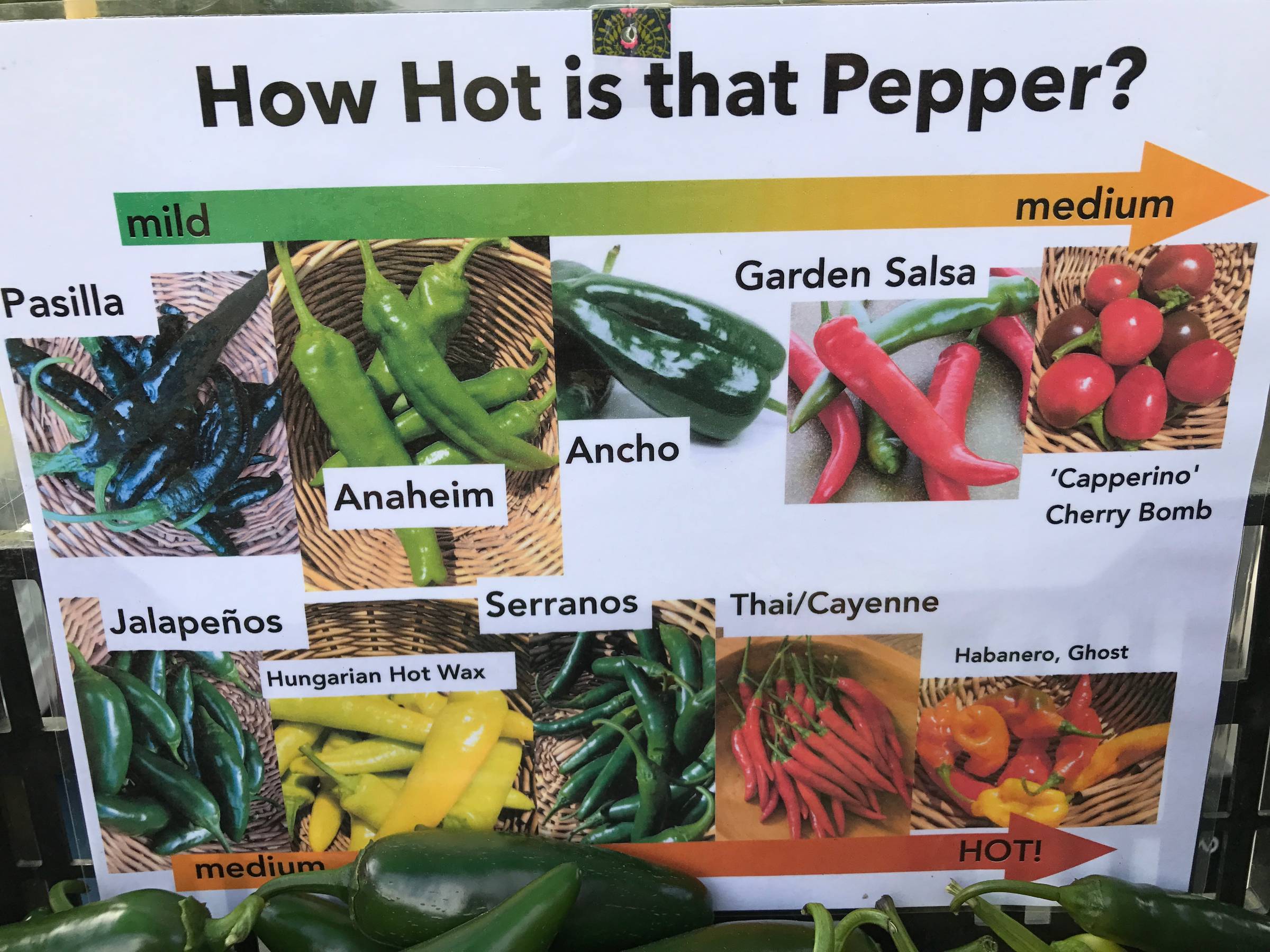 That’s the hard part! Many of you have seen our “Heat Guide” sign at the market, but even then, it can be confusing. The size, color, and ripeness of a pepper can all affect its heat level.