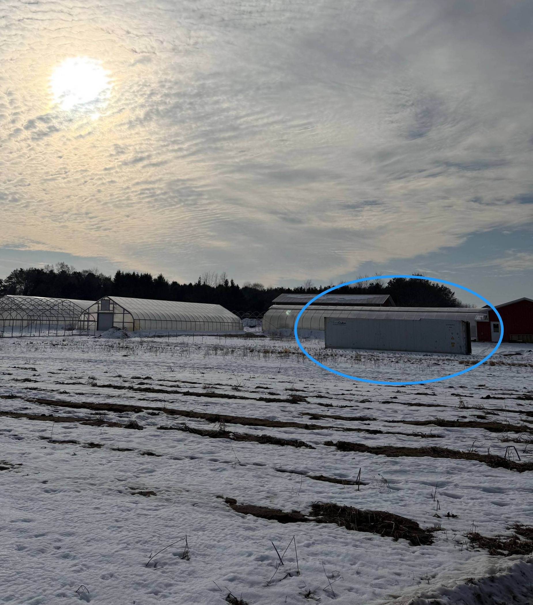 In the winter pic I shared, Carl is quietly sitting behind our temporary Packshed (the building where we clean your veggies), nestled by the hoophouses and skeletons thereof. I can't remember if we've ever talked about Carl?